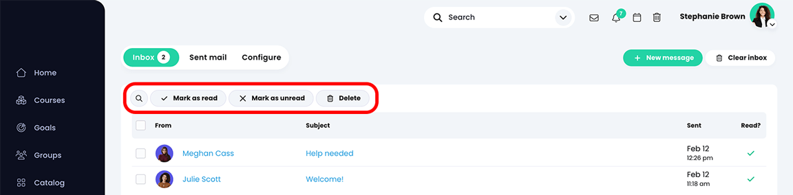 - حدد الرسائل، وقم بتمييزها كمقروءة أو غير مقروءة.