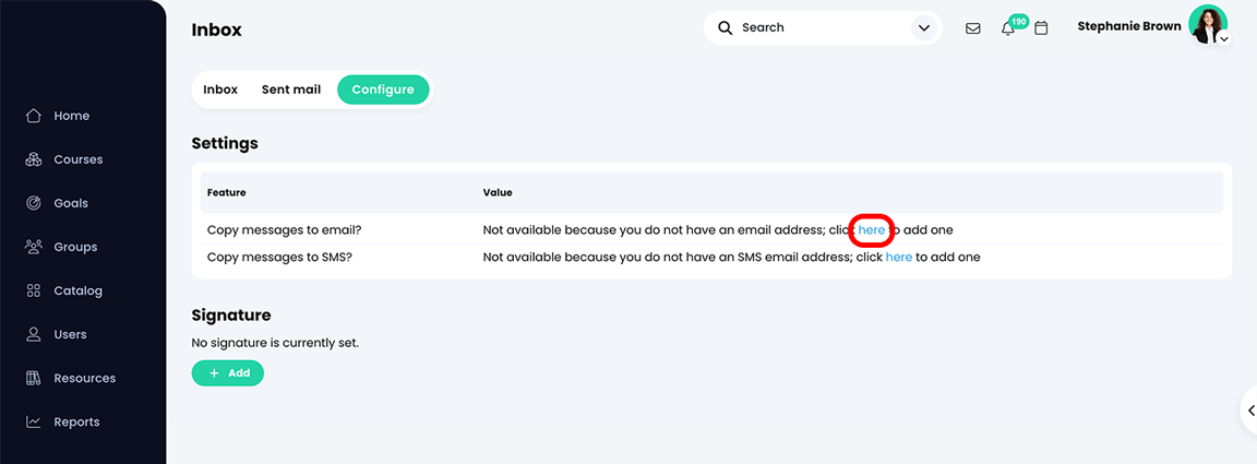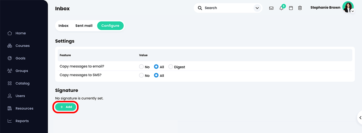 - انقر فوق " إضافة " أسفل "التوقيع".