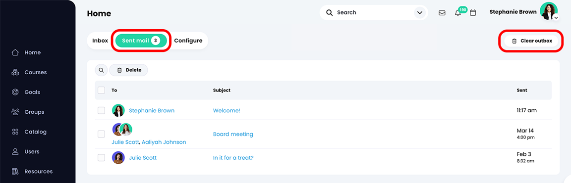 - انقر على "البريد المرسل" لعرض جميع رسائلك المرسلة.