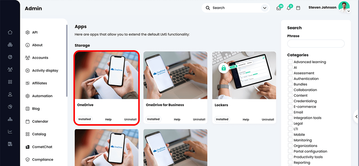 - قم بتثبيت تطبيق OneDrive for Business من قسم التخزين في مركز التطبيقات.